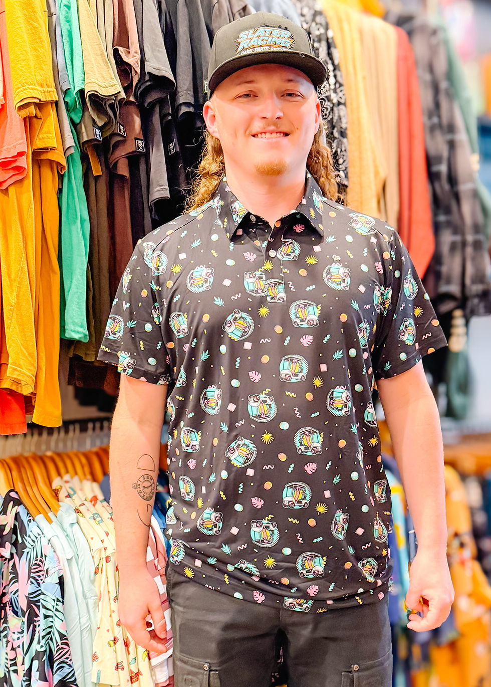 Tipsy Elves Men's Performance Golf Shirt - Black Cart Dog Golf Polo